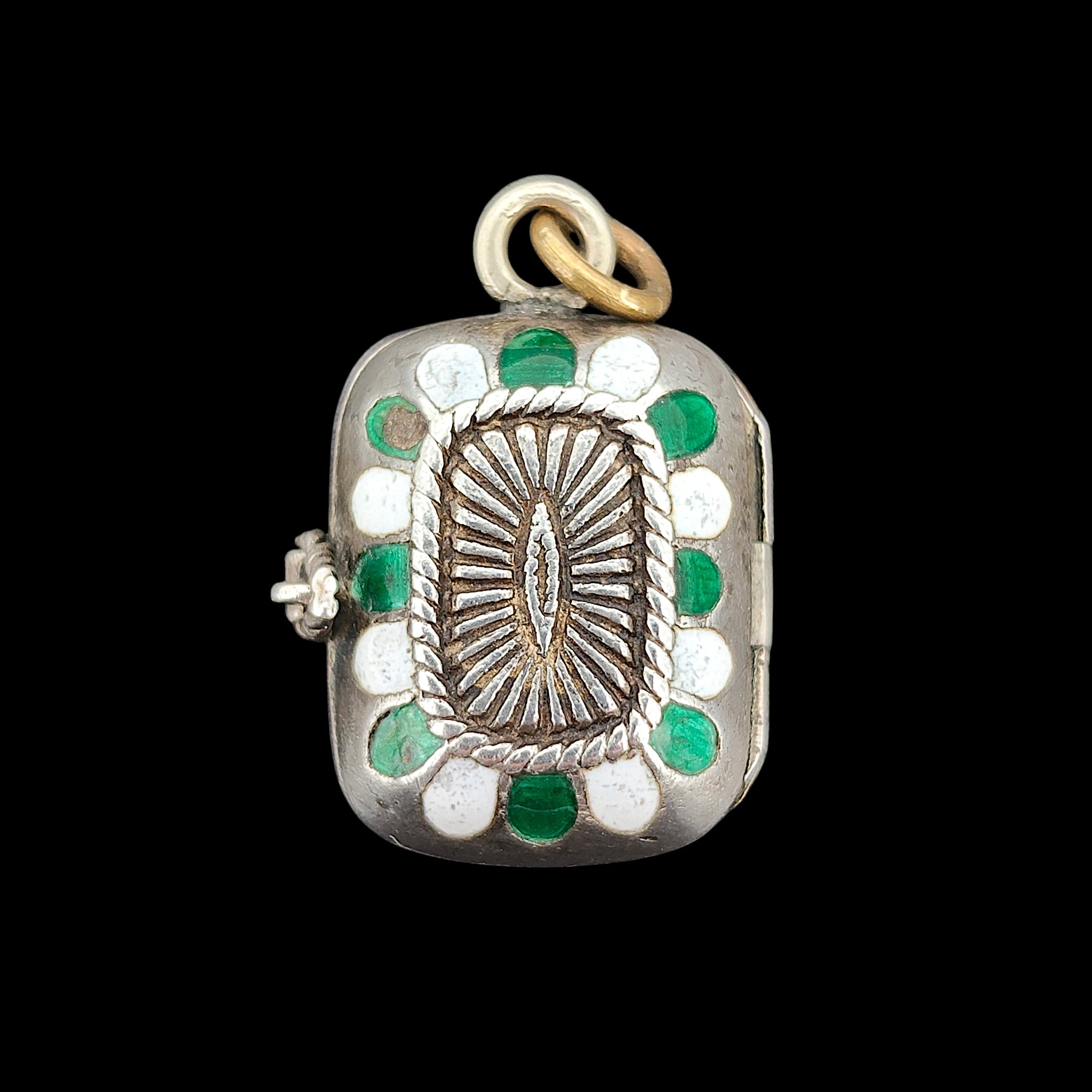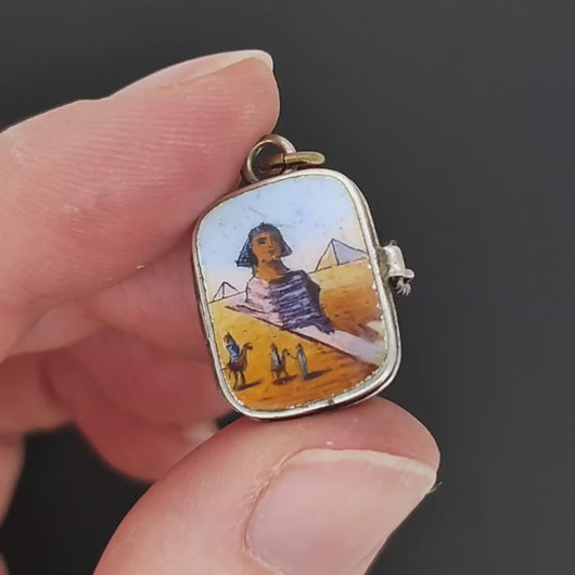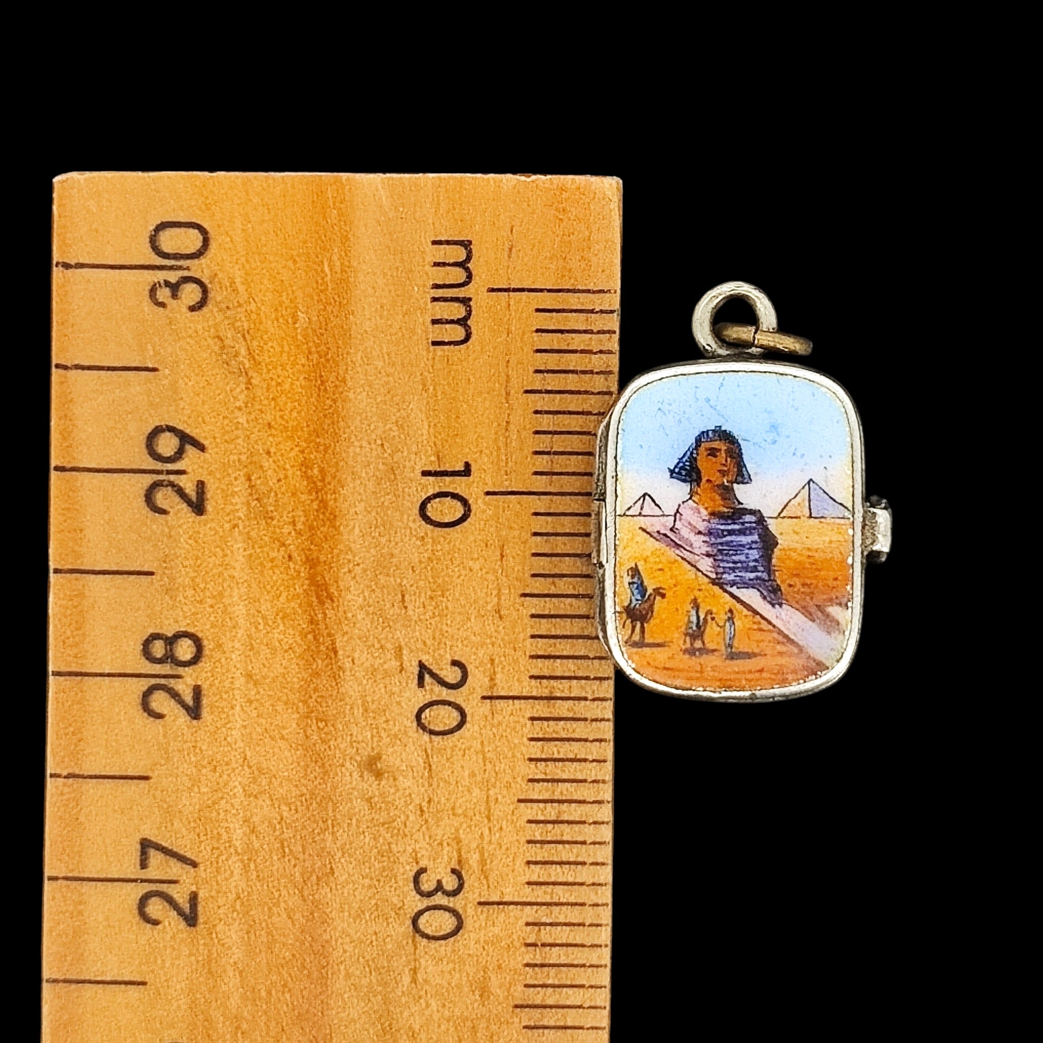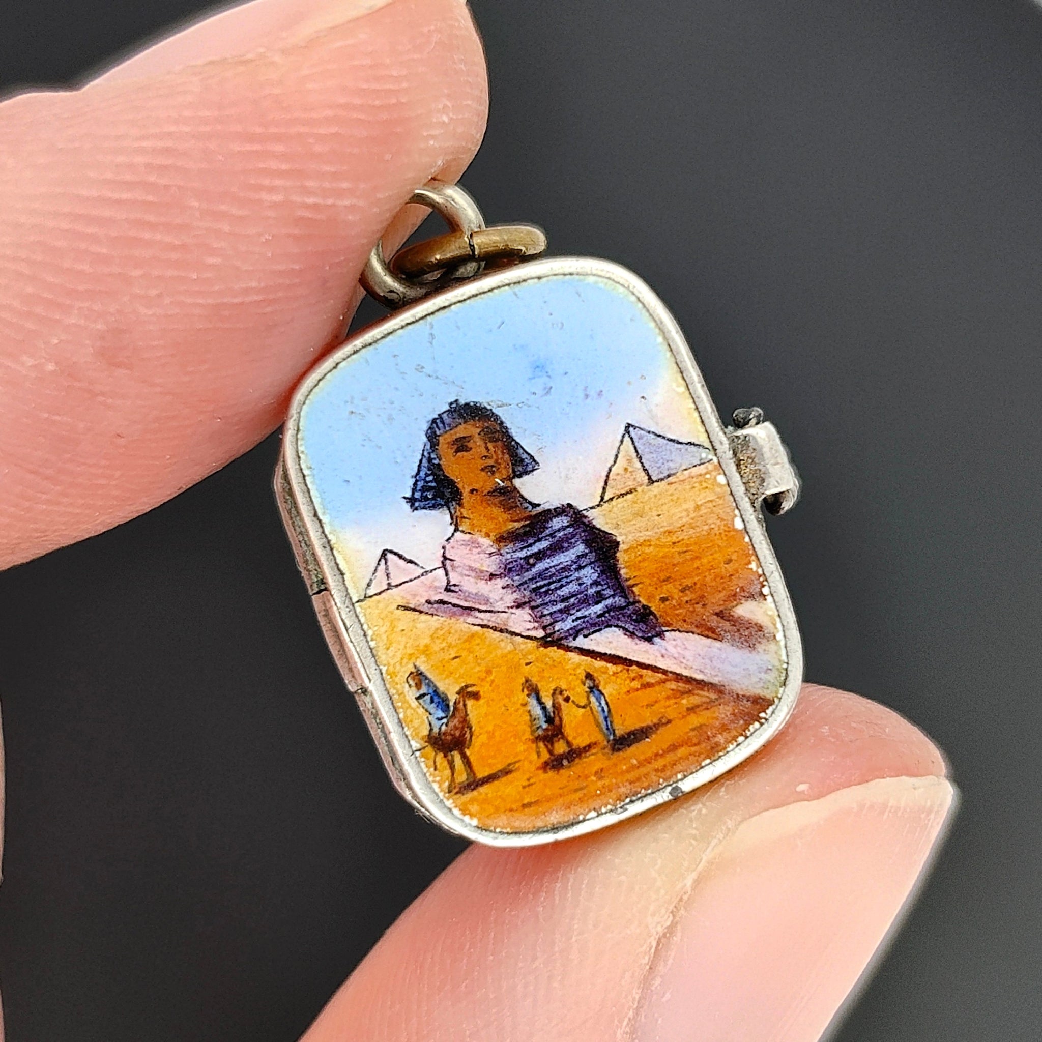 - Art Deco Egyptian Revival 800 Silver Enamel Mini Locket Pendant Charm