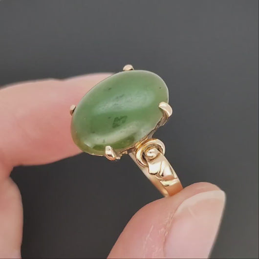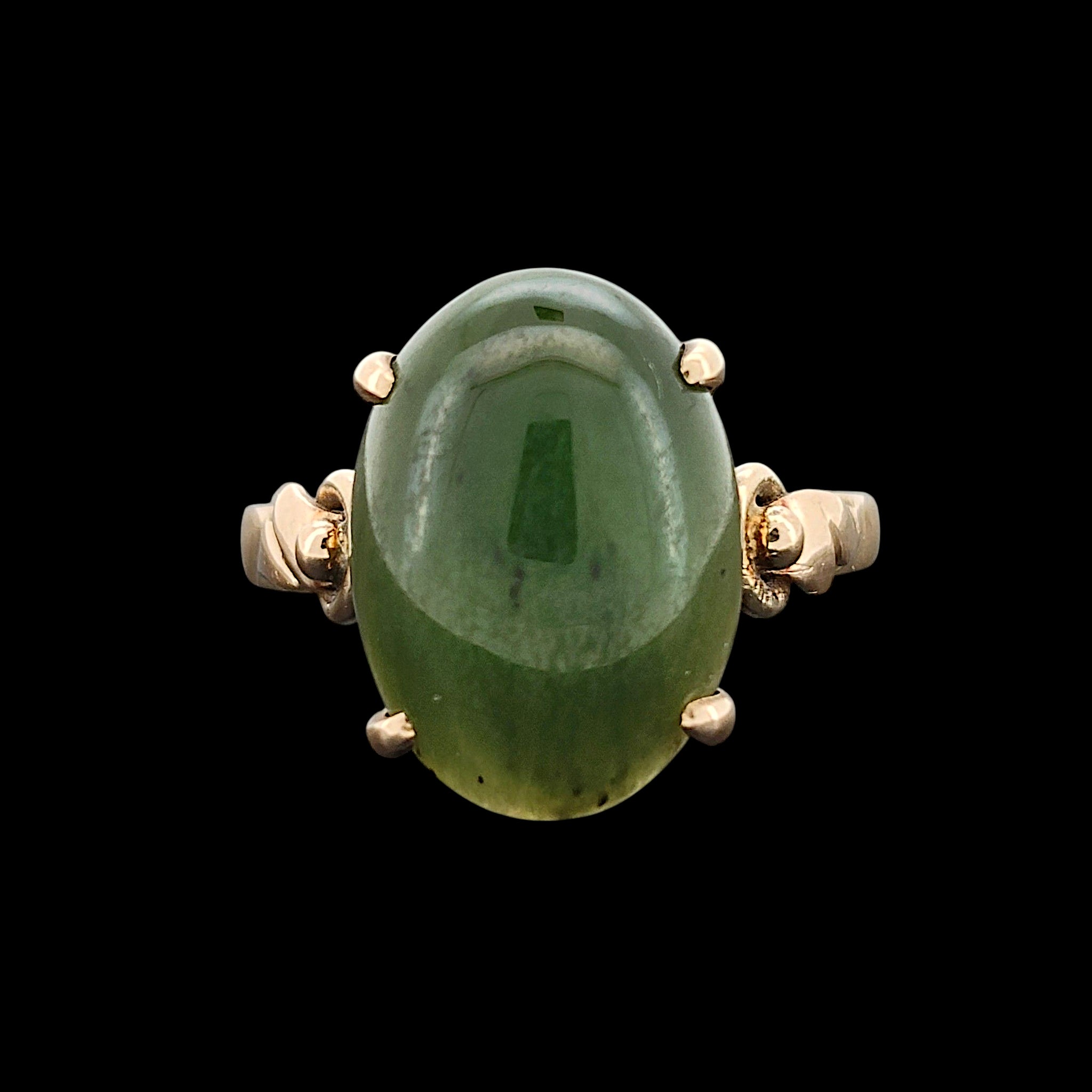 - Vintage 14k Gold Nephrite Jade Solitaire Ring